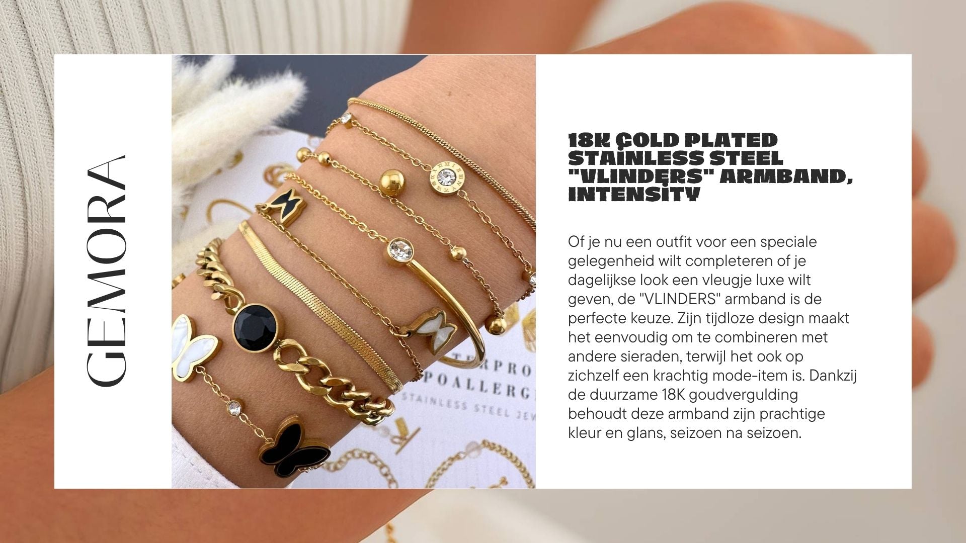 Die zarten Schmetterlinge, die anmutig über das Armband verteilt sind, symbolisieren Transformation, Freiheit und Schönheit – perfekt für die Frau, die ihr persönliches Wachstum und ihre Eleganz feiern möchte. Der Name „Intensity“ bezieht sich auf das kraftvolle Erscheinungsbild des Armbands, das mit seinen raffinierten Details und der starken Konstruktion ein Statement setzt, ohne aufdringlich zu wirken.