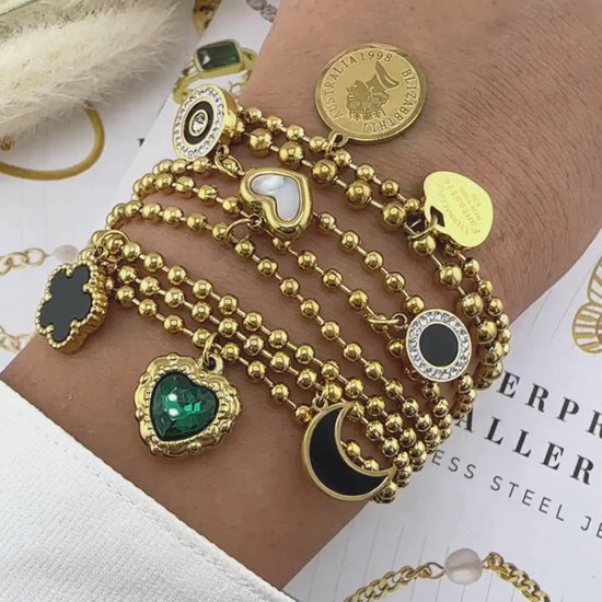 Bead-link bracelet with engraved heart charm